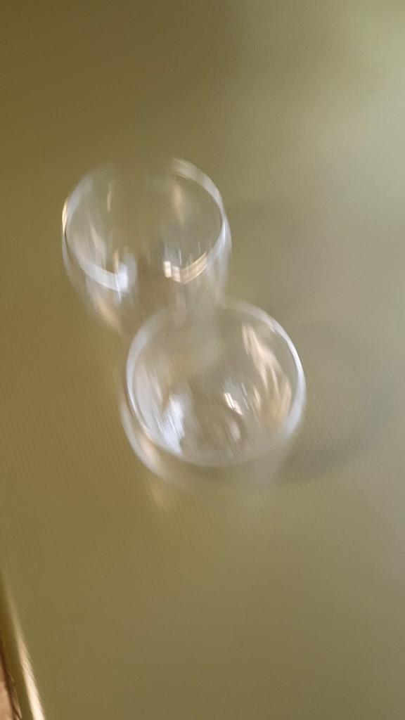 Heile angekommen, Vakuum ist dicht. Rand etwas uneben, gewellt, unterschiedlich dick.