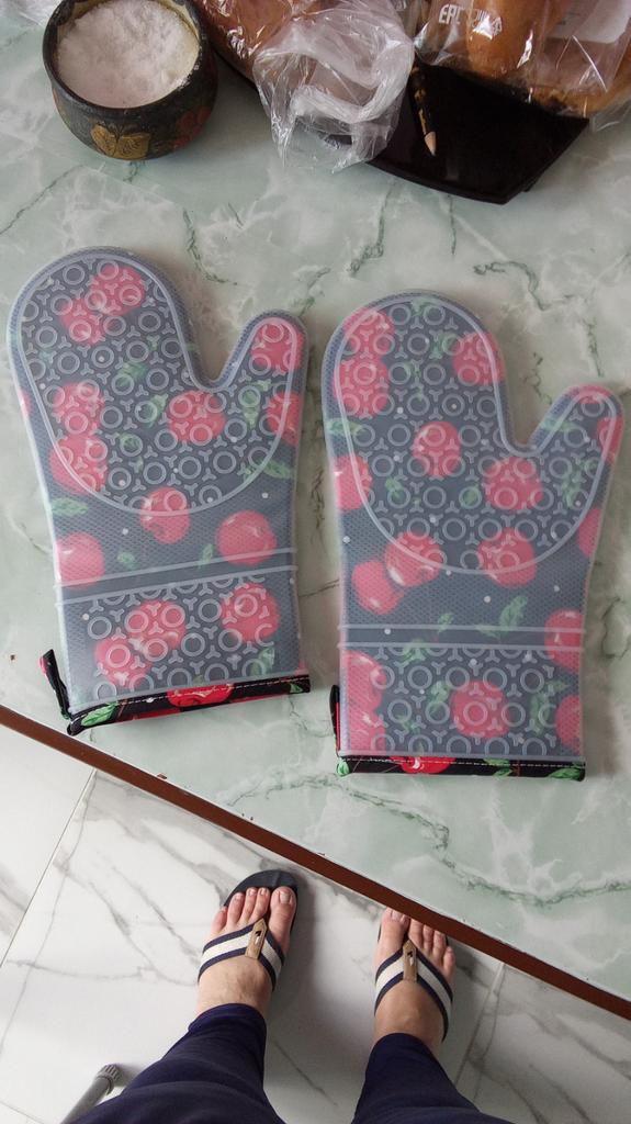 1 pár silikonových rukavic Bavlněná podšívka Všestranná tepelně odolná Užitečné protiskluzové čiré silikonové pečicí rukavice do kuchyně