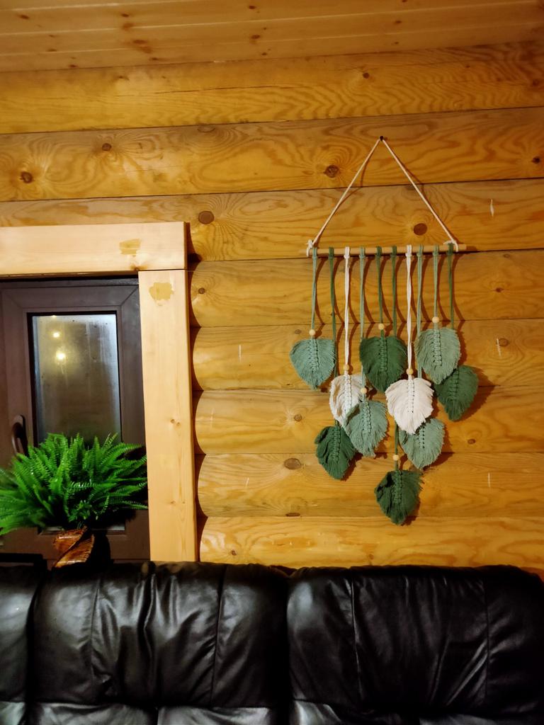 Nástěnná dekorace Velký Boho Macrame Ručně vyráběná příze Tkaná Tapiserie s listovým motivem Nástěnný závěs s umělým peřím pro domácí dekoraci