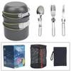 Přenosná sada kempingového nádobí, venkovní hrnce, mini plynové sporáky, sady pro vaření v přírodě, na túru, piknik, se skládací lžící, vidličkou, nožem