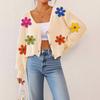 Dámský krátký pletený svetr na dva knoflíky, nový dámský trojrozměrný květ s nízkým výstřihem a dlouhým rukávem