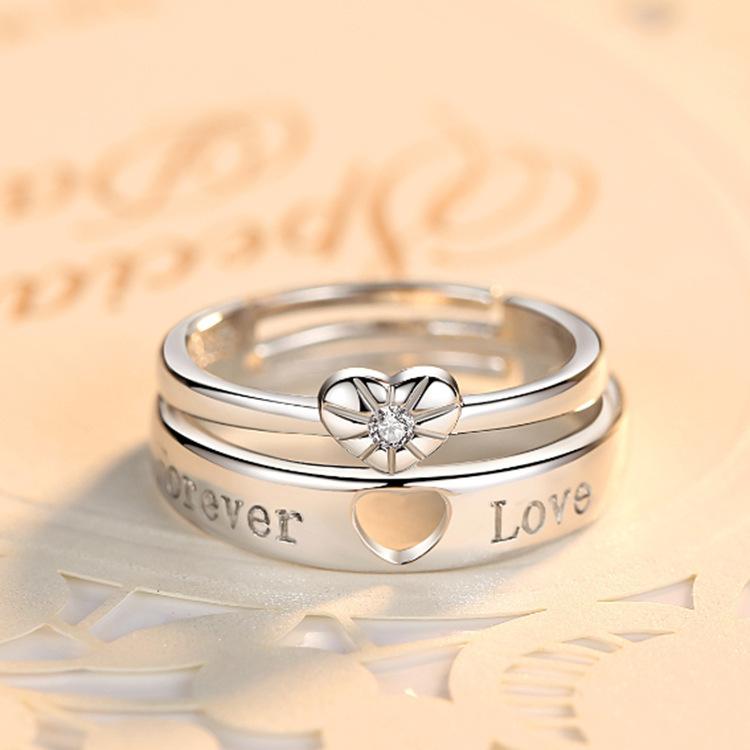 Classic Couple Ring Heart Shaped Zirconium Pair Ring Small Design Wedding Opening Ring for Men and Women