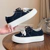 Female Footwear Canvas High On Platform Women's Shoes Low Black Walking Y2k Fashion 2024 New With Stylish Casual Original