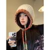 New Hat Women'S Color Matching Long Rope Plush Hat Women'S Winter Outdoor Warm Ear Protection Knitted Wool Hat