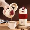 Kreativní dvoustěnný termohrnek s víčkem z nerezové oceli Přenosný šálek na kávu a mléko Cestovní šálek na čaj Kancelářský šálek na vodu Nádobí