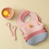 4Pcs Children's Tableware Set Baby Feeding Food Training Silicone Tableware Baby Sucker Dishes Plate Bowl Spoon Baby Stuff