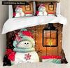 Christmas Duvet Cover Set, Snowman with Santa Hat In The Garden with A Gift Box and Candle Cartoon Image Polyester Bedding Set