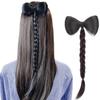 Black bow ponytail wig, braided wig extension, suitable for girls' daily wear and work attire