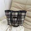 Velkokapacitní taška, módní taška přes rameno, vlněná kostkovaná taška pod paži, všestranná taška na dojíždění v cizím stylu