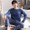 Pánské dvoudílné bavlněné pyžamo s dlouhým rukávem, spací top, kalhoty, noční prádlo, pyžamo pro mladé chlapce
