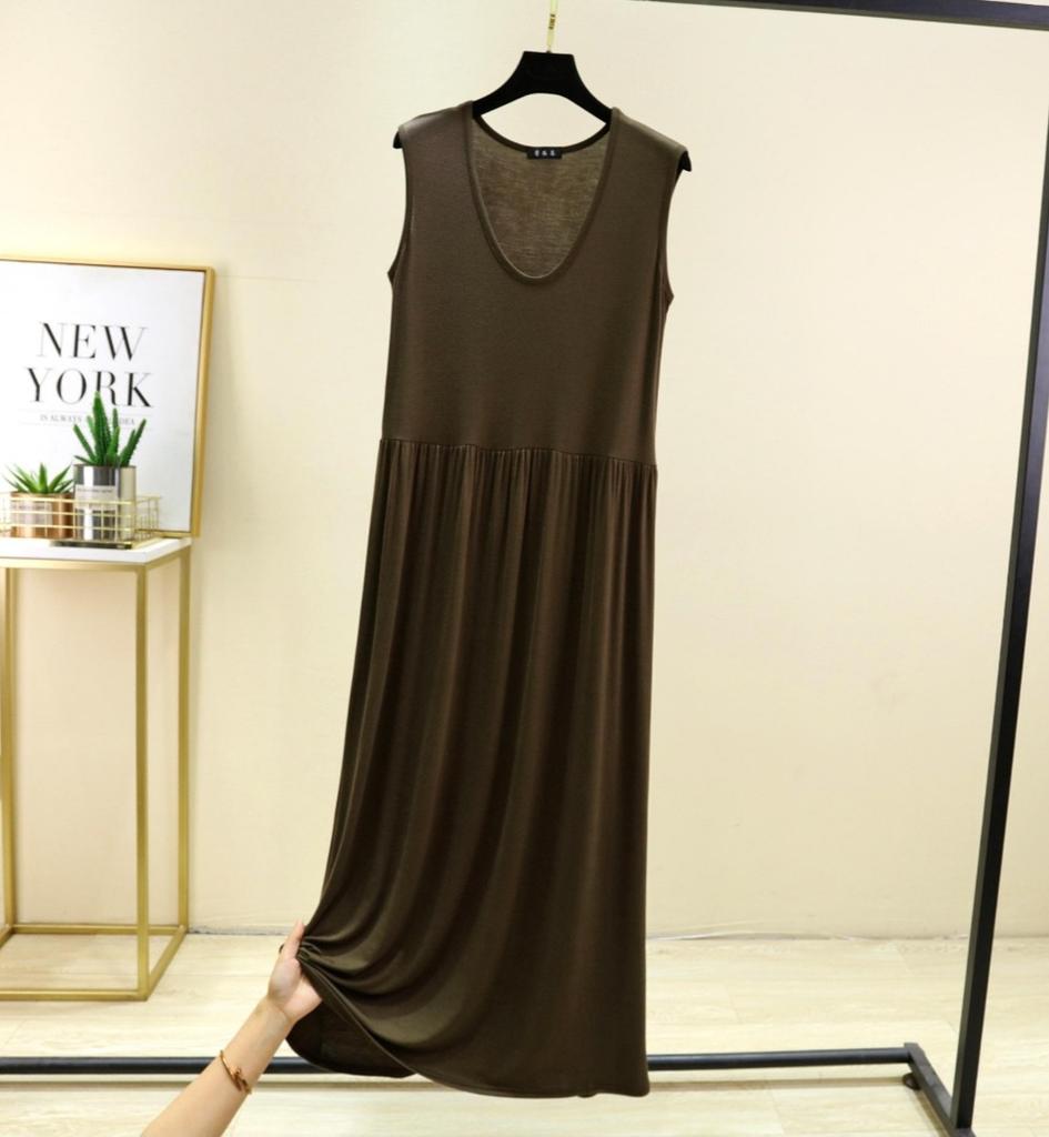 Velká velikost L až 6XL Dámské šaty Modal Tílko bez rukávů Plisované spací šaty Středně dlouhé šaty na zeštíhlení pasu Volné domácí oblečení
