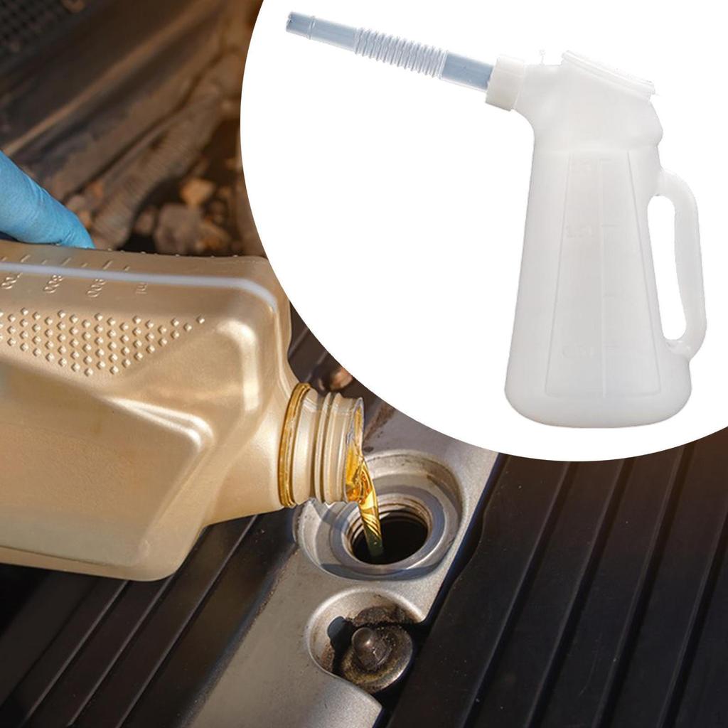 - 【Features】: Oil Measuring Jug with ergonomically handle, large diameter oil inlet design makes it convenient to pour engine oil into the oil pot