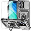 Coque de protection - Antichoc - pour iPhone 16 - Argenté - Rigide - Protège-caméra coulissant