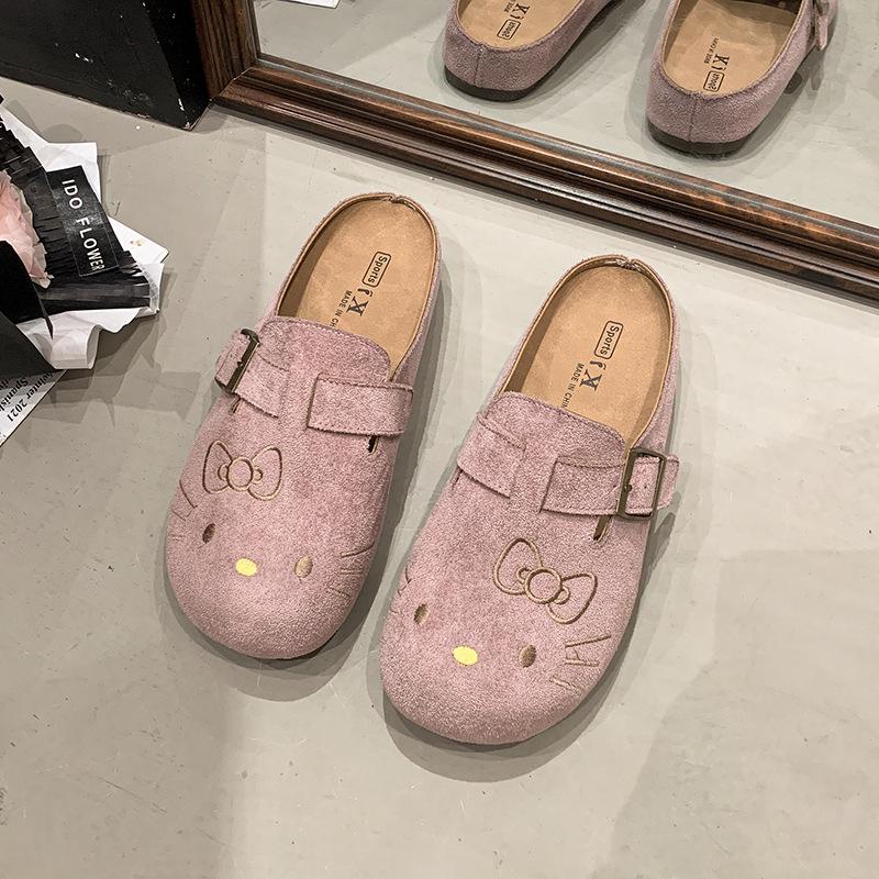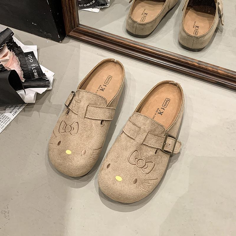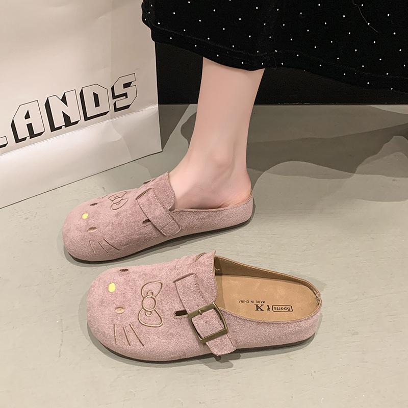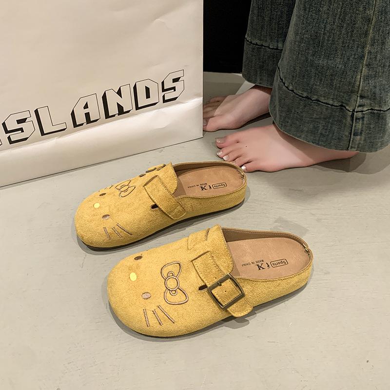 Retro cute cartoon slippers women's 2025 new lazy one-pedal fashion bag head half slippers