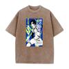 BLUE LOCK Anime Clothing Barou Shouei Printed Washed Tshirt Men Breathable Cotton T-shirts Manga Washed Tee Harajuku T Shirt