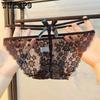 Women's Printed Ice Silk Underwear with No Trace Low Waist Bow Hollow Lace Triangle Pants