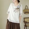 Summer New Five Quarter Sleeve Embroidered Women's Versatile Solid Color Shirt for Middle-aged