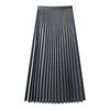 Women's Gray Pleated A-Line Midi Skirt - 2024 Fall/Winter, Elastic Waist, Slimming Fit