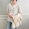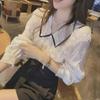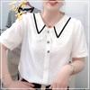 European Color-Block Peter Pan Collar Lace Embroidered Short-Sleeve Women’s Loose-Slimming Top