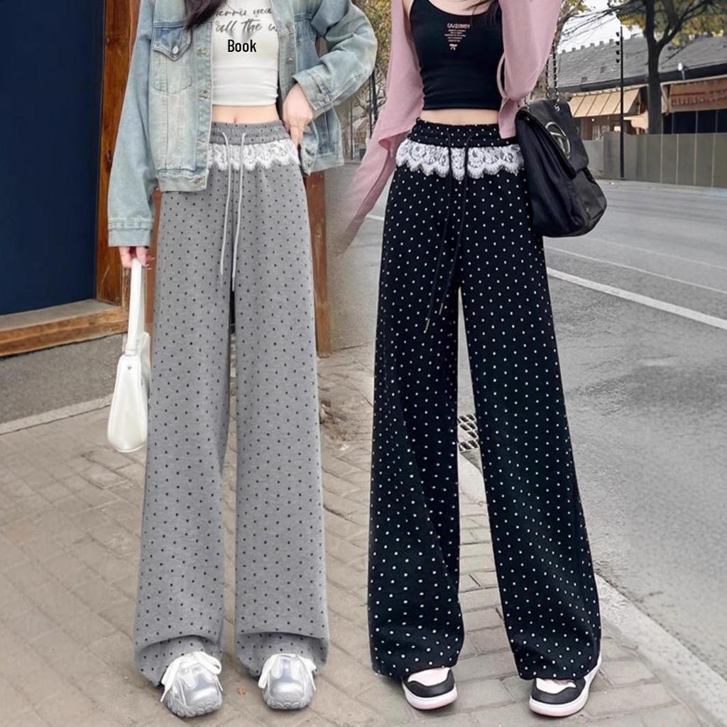 Women's High-Waist Polka Dot Lace Patchwork Wide-Leg Pants - Spring 2025 Collection