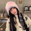Autumn and winter warm color knitted ear protectors pullover wool hat women's face small rainbow tied hat