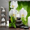 Zen Garden Bamboo Spa Stone Flower Theme Shower Curtain, Bathroom Decorative Shower Curtain, Waterproof Shower Curtain with Hook