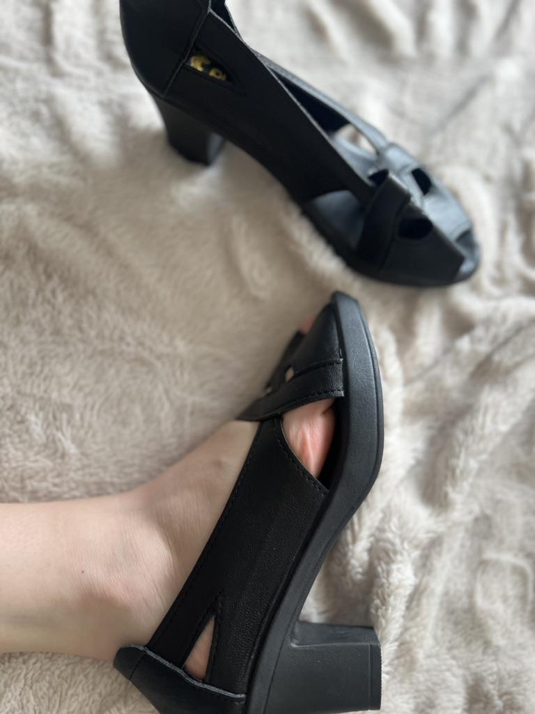 👠 Obdržela jsem svou objednávku jsem plně spokojená miluji je 👠 Černé polokozačky na středním podpatku ze syntetické kůže, otevřené vpředu a po stranách, ideální na léto. Pohodlné a stabilní díky svému blokovému podpatku, nosí se stejně dobře k šatům jako k volným kalhotám.. Tyto černé sandály na blokovém podpatku spojují pohodlí a eleganci. Design : perforovaný svršek s otevřenou špičkou a vykrojenými boky pro lepší prodyšnost. Podpatek : stabilní blokový podpatek cca 5-6 cm, ideální pro každodenní nošení. Styl : elegantní a všestranný, vhodný jak do kanceláře, tak na večer. Pohodlí: měkká podrážka a elastický pásek pro dobrou oporu nohy. Snadno je zkombinujte s potištěnými šaty, splývavými kalhotami nebo dokonce džínami pro ležérně elegantní vzhled.. Doporučuji prodejce na 100 % ✅️ Balíček obdržen v krátkém čase, maximálně do týdne Chráněný balík
