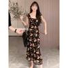 Early summer new pink suspender floral dress casual women's summer French temperament premium hip-wrapped dress