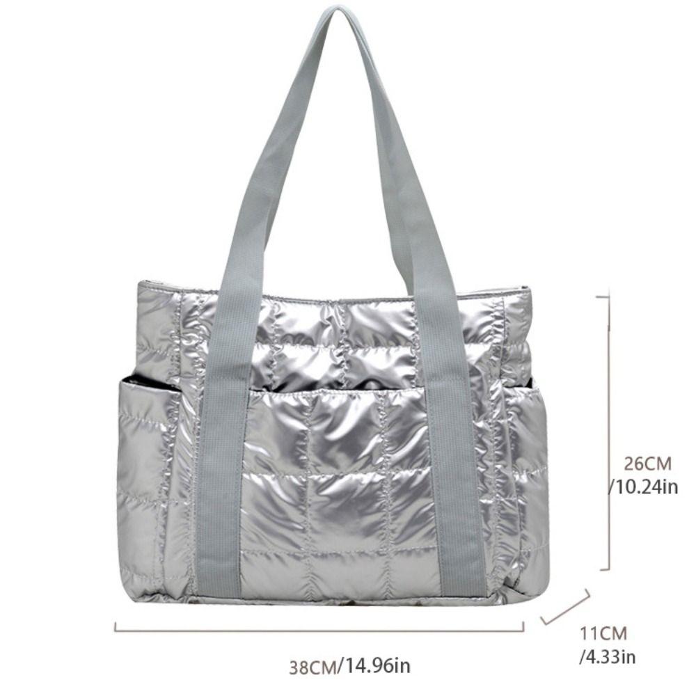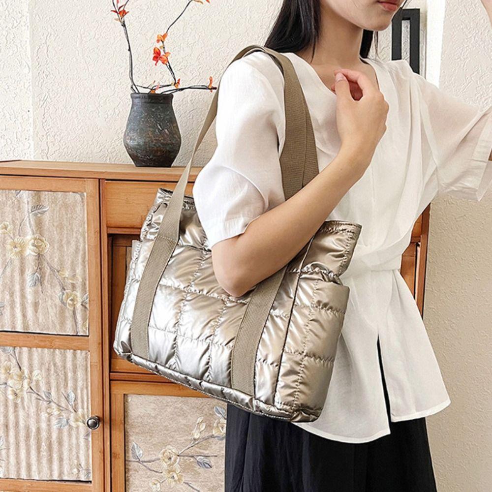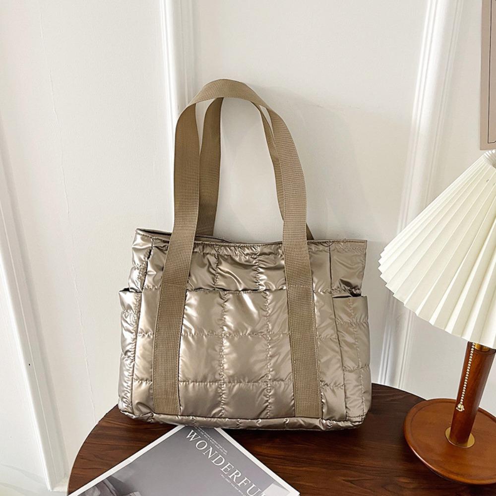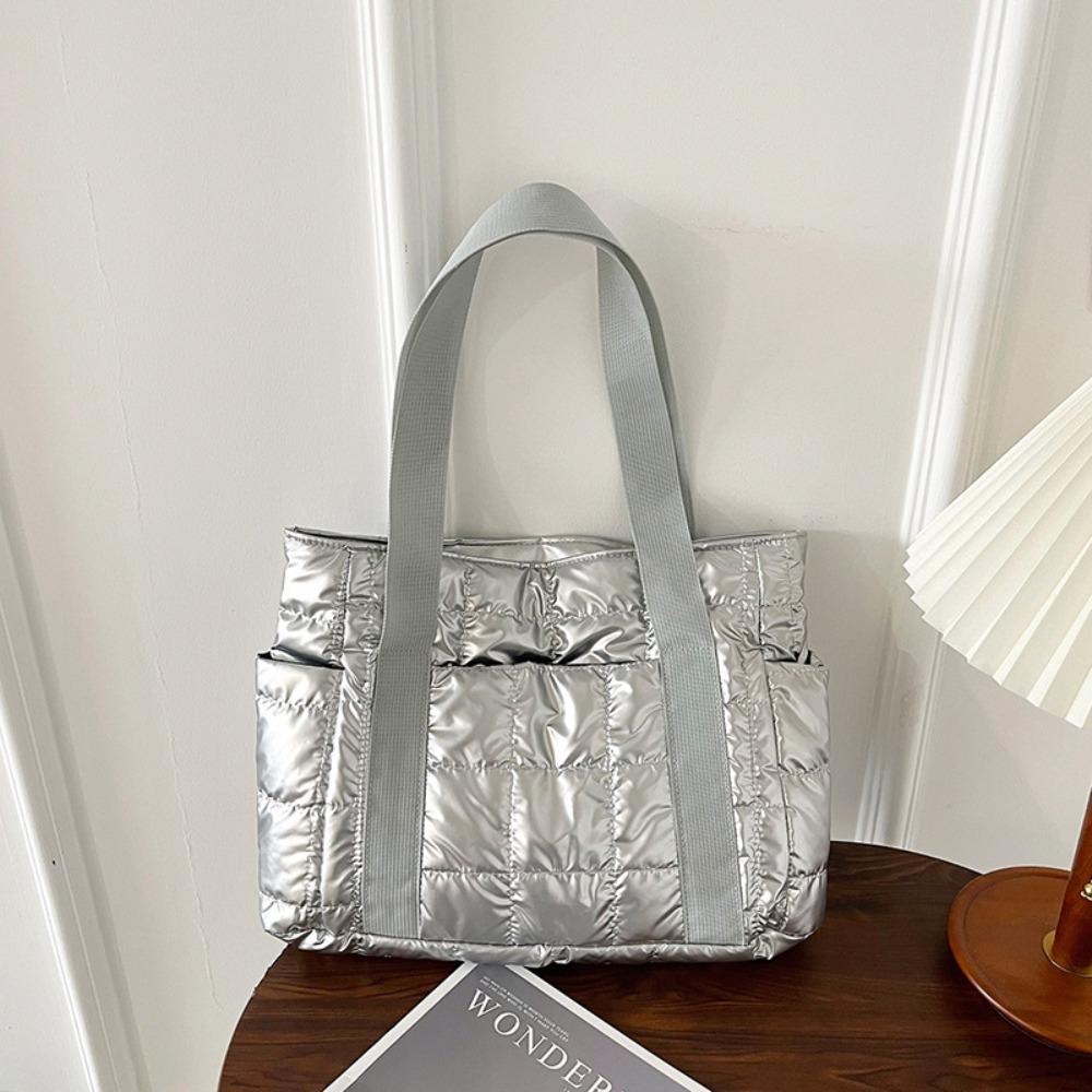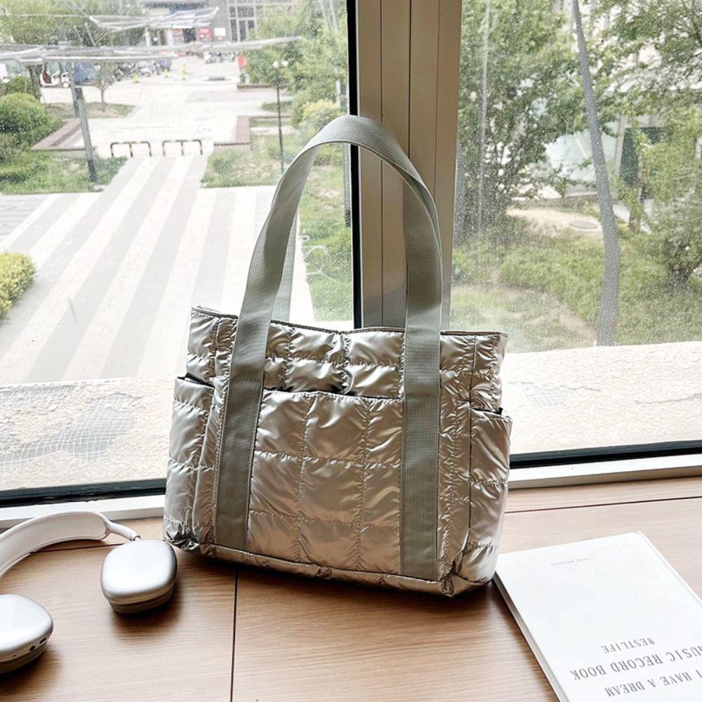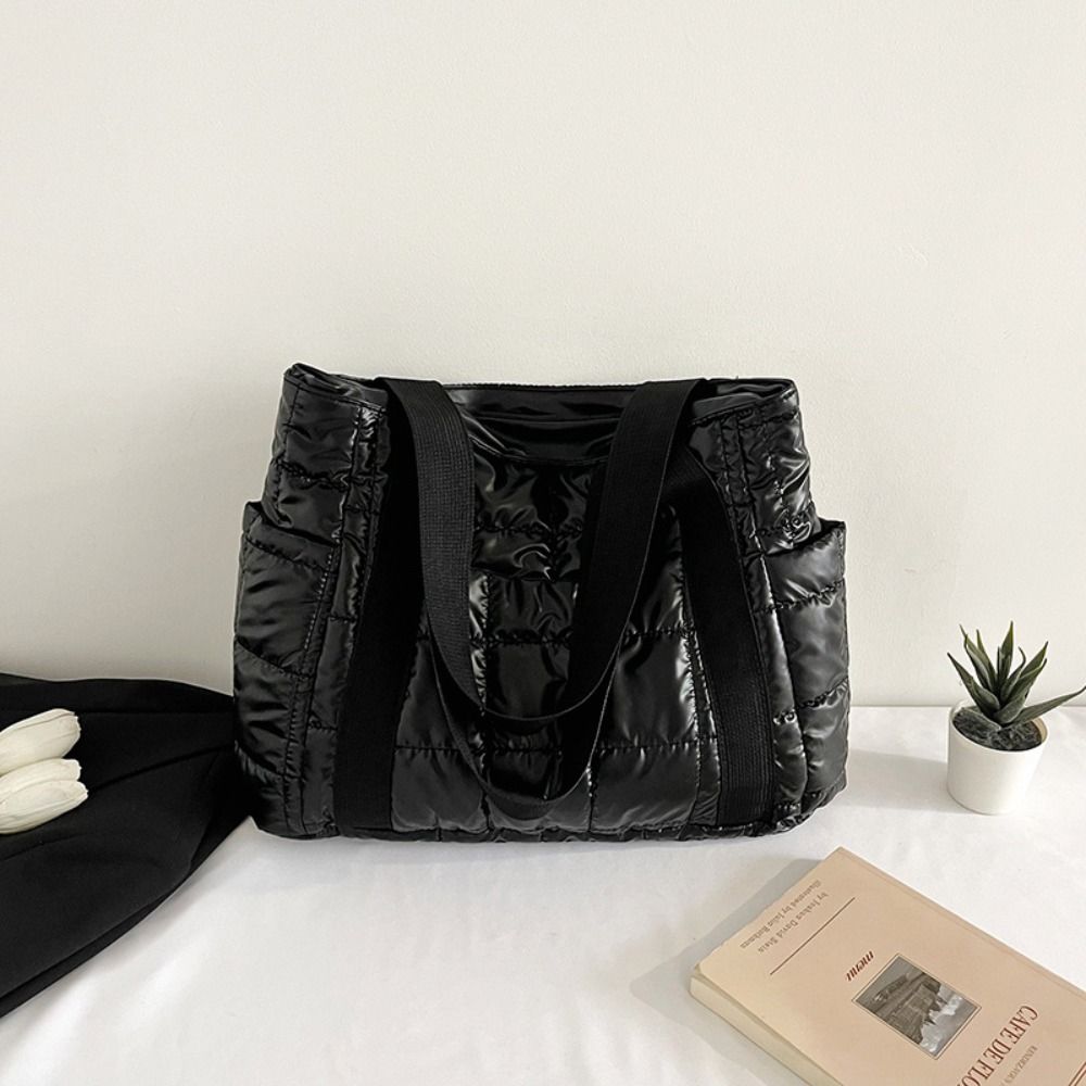 Large Capacity Cotton-padded Tote Bag Korean Style Puffy Bag Simple Nylon Handbag Autumn Winter