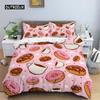 Twin/Full/Queen Size Cute 3D Food-Printed Down Quilt Cover & Pillowcase Bedding Set with Dessert Doughnut Pattern