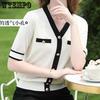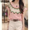 Summer Round Neck Knitted T-shirt Striped Hollow Ice Silk Knitted Short Sleeved T-shirt for Women