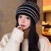Hat women's autumn and winter retro striped wool hat, big head circumference, small face, warm ear protectors, knitted cold hat