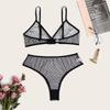 Sexy Women Dot Mesh Lace Wireless Bra Sexy Bandage Lingerie Thong Set Underwear