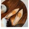 Leather shallow mouth pointed shoes thick heel single shoes women Mary Jane ladyshoes evening shoes small high heels