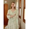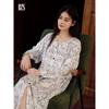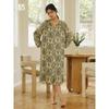 2024 Rayon Satin Long Sleeves Cardigan over the Knee Nightdress Robe Pastoral Print Korean Pajamas plus Size Homewear