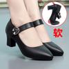 One-word buckle high heels, spring and autumn with cheongsam shoes, dancing single shoes, middle-aged and old 2 leather shoes for work, women's shoes