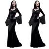 Gothic Dark Cosplay Dress Halloween Women Streetwear Vintage Elegant Sleeve Patchwork V-Neck High Waist Evening Gowns