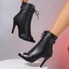 Fashion Women's Fashion Fish Mouth Ankle Boots Autumn New Round Head Thin Heel Hollow Lace High Heel Temperament Large Size Sandals