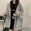 Autumn Winter Loose Casual Simple All-match Hooded Sweet Women Pocket Zipper Cardigan Hoodies Female Top