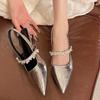 Fashion 2025 New Water Diamond High Heels Mary Jane Women's Single Shoes with Thin Heels and Pointed Shallow Mouth Women's Wedding Shoes
