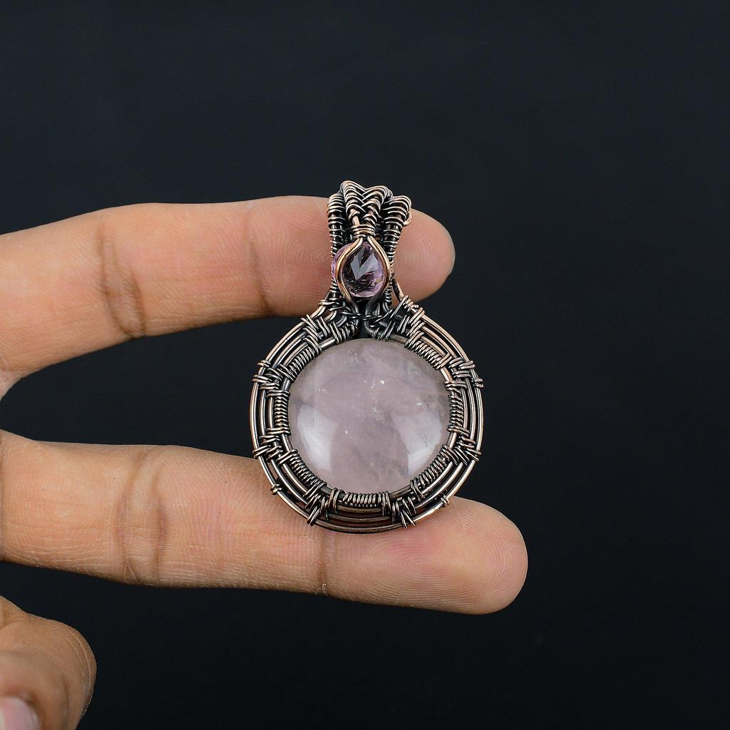 Rose Quartz Jewelry, 999 Copper Wire Wrapped Pendant Handmade Gemstone Jewelry, Gifts For Wife Brand New Pendant