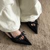Cowhide version~ Beautiful bow leather high heels women's stiletto with high heels sandals pointed sandals single shoes