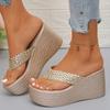 Fashion Hot - Selling Chunky Wedge Sandals | Gold Braided Straps Slides for Daily & Vacation Looks