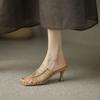 Fashion Women's New Summer Retro Square Headed Hollow Knitted Genuine Leather Sheepskin Open Toe High Heel Large Sandals