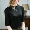 White T-shirt women's half-sleeved early autumn new front shoulder stand-up collar slim t-shirt women's five-quarter-sleeved versatile top