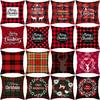 Red Plaid Elk Deep Forest Christmas Pillow Cover Home Sofa Cushion Cover