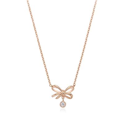 Sladký růžový zirkonový přívěsek náhrdelník srdce luk řetízek pro ženy šperky příslušenství
