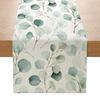 1PC Eucalyptus Leaves Spring Summer Linen Rectangular Table Runner Home Party Decor Green Plant Design