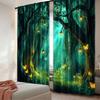 2Pcs Forest Curtain Dark Gothic Themed Scene With Magic Tree And Secret Cave Moon Suitable For Living Room And Bedroom