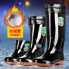 Jundeng medium and high tube men's non-slip rain boots waterproof shoes thermal rubber shoes velvet water boots cover feet cotton rain shoes men